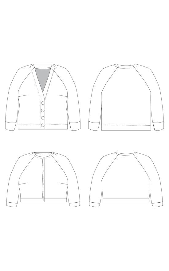 The Fuller Cardigan by Cashmerette Patterns is a raglan cardigan that features shoulder and bust darts for the ideal fit over curves.